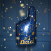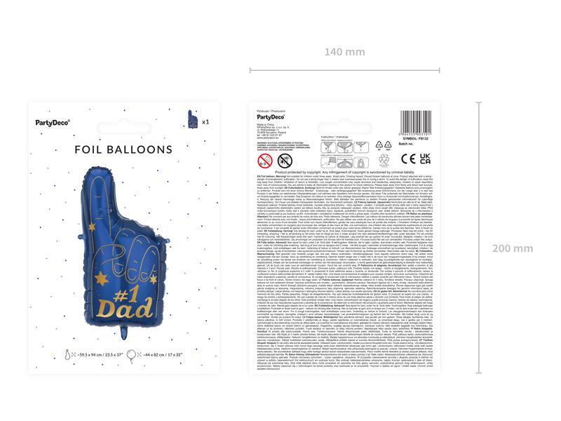 Balon foliowy #1 Dad w kolorze granatowym ze złotym nadrukiem, wymiary przed napompowaniem 59.5 x 94 cm (23.5 x 37”), wymiary po napompowaniu 44 x 82 cm (17 x 32”). Do napompowania powietrzem i helem. Zestaw zawiera słomkę.