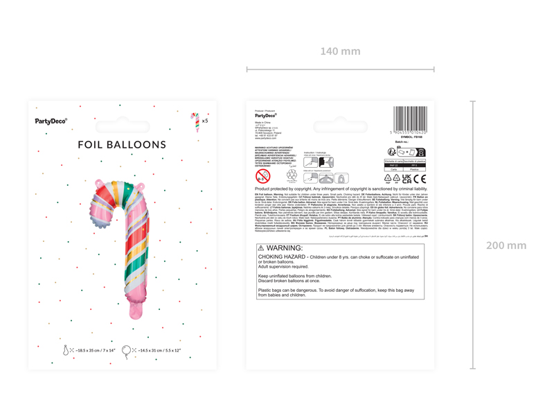 Balon foliowy Cukrowa Laska, 18.5×35 cm, mix (1 op. / 5 szt.)