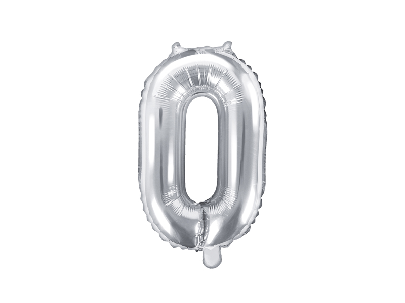 Balon foliowy metalizowany Cyfra ”0” w kolorze srebrnym, rozmiar przed napompowaniem ok. 40 cm (16”), rozmiar po napompowaniu ok. 35 cm (14”). Do napompowania powietrzem.