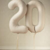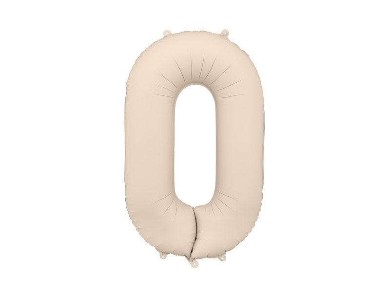 Balon foliowy matowy Cyfra 0 w kolorze jasnobeżowym, rozmiar przed napompowaniem ok. 100 cm (39”), rozmiar po napompowaniu ok. 86 cm (34”). Do napompowania powietrzem i helem. Zestaw zawiera słomkę. Balon jest samouszczelniający się. Posiada haczyki ułatwiające montaż balona do dekoracji.