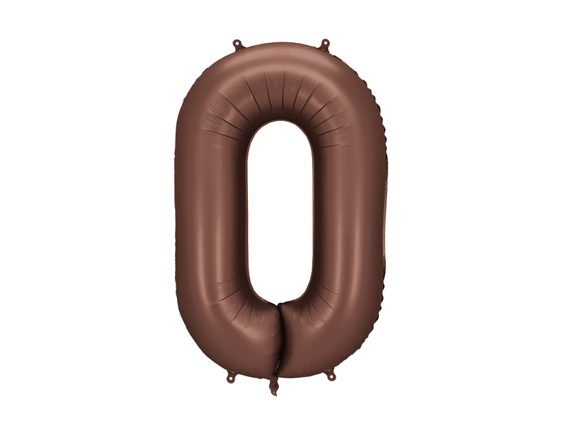 Balon foliowy satynowy Cyfra 0 w kolorze mocha, rozmiar przed napompowaniem ok. 100 cm (39”), rozmiar po napompowaniu ok. 86 cm (34”). Do napompowania powietrzem i helem. Zestaw zawiera słomkę. Balon jest samouszczelniający się. Posiada haczyki ułatwiające montaż balona do dekoracji.