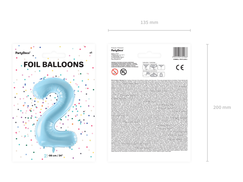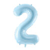 Balon foliowy pastelowy Cyfra 2 w kolorze jasnoniebieskim, rozmiar przed napompowaniem ok. 100 cm (39”), rozmiar po napompowaniu ok. 86 cm (34”). Do napompowania powietrzem i helem. Balon jest samouszczelniający się. Posiada haczyki ułatwiające montaż balona do dekoracji.