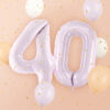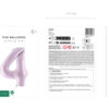 Balon foliowy pastelowy Cyfra 4 w kolorze fioletowym, rozmiar przed napompowaniem ok. 86 cm (34”), rozmiar po napompowaniu ok. 72 cm (28”). Do napompowania powietrzem i helem. Zestaw zawiera słomkę. Balon jest samouszczelniający się. Posiada haczyki ułatwiające montaż balona do dekoracji.
