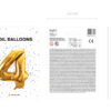 Balon foliowy metalizowany Cyfra 4 w kolorze złotym, rozmiar przed napompowaniem ok. 100 cm (39”), rozmiar po napompowaniu ok. 86 cm (34”). Do napompowania powietrzem i helem. Balon jest samouszczelniający się. Posiada haczyki ułatwiające montaż balona do dekoracji.