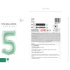 Balon foliowy pastelowy Cyfra 5 w kolorze zielonym, rozmiar przed napompowaniem ok. 86 cm (34”), rozmiar po napompowaniu ok. 72 cm (28”). Do napompowania powietrzem i helem. Zestaw zawiera słomkę. Balon jest samouszczelniający się. Posiada haczyki ułatwiające montaż balona do dekoracji.