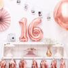 Balon foliowy metalizowany Cyfra ”6” w kolorze różowego złota, rozmiar przed napompowaniem ok. 40 cm (16”), rozmiar po napompowaniu ok. 35 cm (14”). Do napompowania powietrzem.