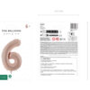 Balon foliowy matowy Cyfra 6 w kolorze ciemnobeżowym, rozmiar przed napompowaniem ok. 86 cm (34”), rozmiar po napompowaniu ok. 72 cm (28”). Do napompowania powietrzem i helem. Zestaw zawiera słomkę. Balon jest samouszczelniający się. Posiada haczyki ułatwiające montaż balona do dekoracji.