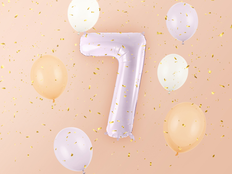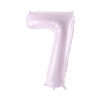 Balon foliowy pastelowy Cyfra 7 w kolorze fioletowym, rozmiar przed napompowaniem ok. 86 cm (34”), rozmiar po napompowaniu ok. 72 cm (28”). Do napompowania powietrzem i helem. Zestaw zawiera słomkę. Balon jest samouszczelniający się. Posiada haczyki ułatwiające montaż balona do dekoracji.