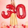 Balon foliowy metalizowany Cyfra 7 w kolorze czerwonym, rozmiar przed napompowaniem ok. 100 cm (39”), rozmiar po napompowaniu ok. 86 cm (34”). Do napompowania powietrzem i helem. Balon jest samouszczelniający się. Posiada haczyki ułatwiające montaż balona do dekoracji.