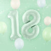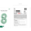 Balon foliowy pastelowy Cyfra 8 w kolorze zielonym, rozmiar przed napompowaniem ok. 86 cm (34”), rozmiar po napompowaniu ok. 72 cm (28”). Do napompowania powietrzem i helem. Zestaw zawiera słomkę. Balon jest samouszczelniający się. Posiada haczyki ułatwiające montaż balona do dekoracji.