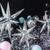 Błyszczący balon foliowy Gwiazda 3D w kolorze srebrnym, średnica ok. 70 cm (27.5”). Zestaw zawiera słomkę.
