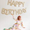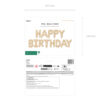 Balon foliowy matowy Happy Birthday w kolorze beżowym, wymiary ok. 340 x 35 cm (134 x 14”). Do napompowania tylko powietrzem. Każdy balon jest samouszczelniający się. Balony posiadają po 4 haczyki ułatwiające montaż napisu do wstążki.