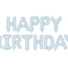 Balon foliowy matowy Happy Birthday w kolorze niebieskim, wymiary ok. 340 x 35 cm (134 x 14”). Do napompowania tylko powietrzem. Każdy balon jest samouszczelniający się. Balony posiadają po 4 haczyki ułatwiające montaż napisu do wstążki.