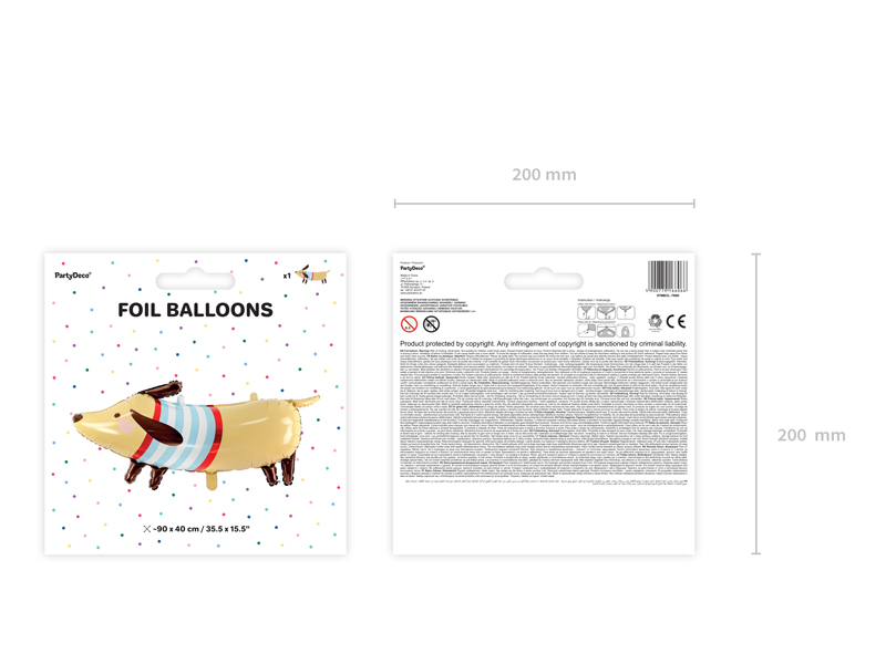Matowy balon foliowy Jamnik, mix kolorów, wymiary przed napompowaniem ok. 96 x 58 cm (38 x 23”), wymiary po napompowaniu ok. 92 x 40 cm (36 x 16”). Do napompowania powietrzem i helem.