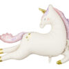 Balon foliowy matowy Jednorożec w kolorze beżowym ze złotymi i tęczowymi elementami. Wymiary przed napompowaniem ok. 126 x 106 cm (49,6 x 41,7”), wymiary po napompowaniu ok. 113 x 83 cm (44,5 x 32,7”). Do napompowania powietrzem i helem. Zestaw zawiera słomkę. Balon jest samouszczelniający się. Posiada 2 haczyki ułatwiające montaż balona do dekoracji.