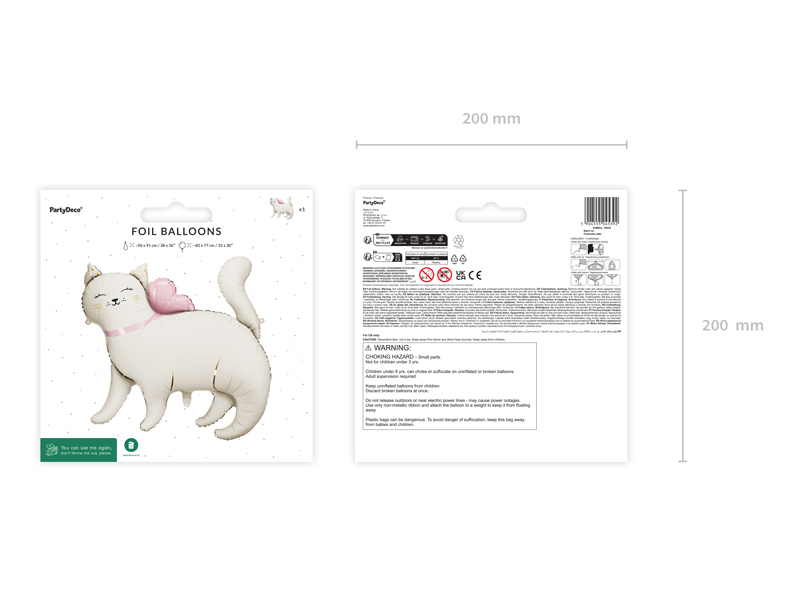 Balon foliowy w kształcie kotka, wym ok. 83 x 77 cm. Do napompowania powietrzem i helem. Zestaw zawiera słomkę