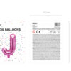 Balon foliowy metalizowany Litera ”J” w kolorze ciemnoróżowym, wysokość ok. 35 cm (14”).