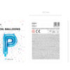 Balon foliowy metalizowany Litera ”P” w kolorze niebieskim, wysokość ok. 35 cm (14”).