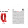 Balon foliowy metalizowany Litera ”Q” w kolorze czerwonym, wysokość przed napompowaniem ok. 40 cm (16”), wysokość po napompowaniu ok. 35 cm (14”). Do napompowania powietrzem.