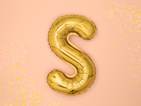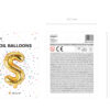 Balon foliowy metalizowany Litera ”S” w kolorze złotym, wysokość przed napompowaniem ok. 40 cm (16”), wysokość po napompowaniu ok. 35 cm (14”) Do napompowania powietrzem.
