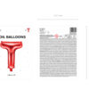 Balon foliowy metalizowany Litera ”T” w kolorze czerwonym, wysokość przed napompowaniem ok. 40 cm (16”), wysokość po napompowaniu ok. 35 cm (14”). Do napompowania powietrzem.