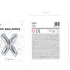 Balon foliowy metalizowany Litera ”X” w kolorze srebrnym, wysokość przed napompowaniem ok. 40 cm (16”), wysokość po napompowaniu ok. 35 cm (14”). Do napompowania powietrzem.