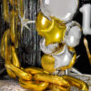 Lustrzany balon foliowy okrągły Pastylka w kolorze złotym, wymiary przed napompowaniem ok. 45 cm (18”), wymiary po napompowaniu ok. 35 cm (14”). Do napompowania helem i powietrzem. Zestaw zawiera słomkę.