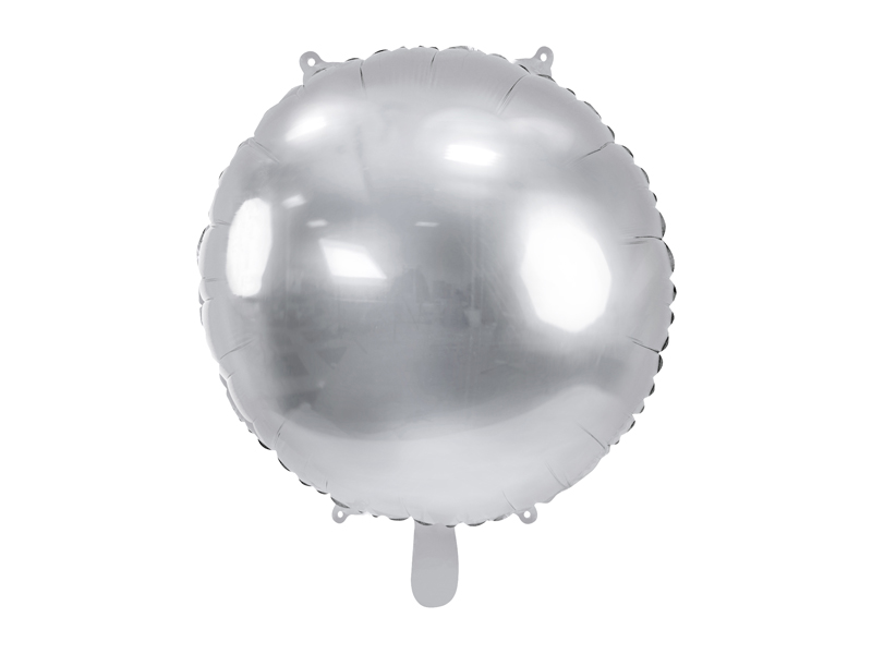 Lustrzany balon foliowy okrągły Pastylka w kolorze srebrnym, wymiary przed napompowaniem ok. 59 cm (24”), wymiary po napompowaniu ok. 44 cm (17”). Do napompowania helem i powietrzem. Zestaw zawiera słomkę.