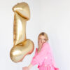 Balon foliowy Penis w kolorze złotym, wymiary przed napompowaniem ok. 55.5 x 112 cm (22 x 44”), wymiary po napompowaniu ok. 46 x 88 cm (18 x 35”). Do napompowania powietrzem i helem. Zestaw zawiera słomkę.
