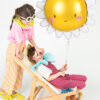 Błyszczący balon foliowy Słońce, mix kolorów, wymiary przed napompowaniem ok. 90 cm (35”), wymiary po napompowaniu ok. 70 cm (27.4”). Do napompowania powietrzem i helem. Zestaw zawiera słomkę.