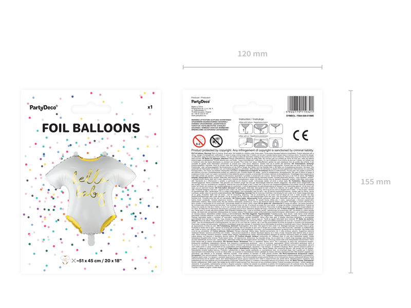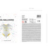 Matowy balon foliowy w kształcie śpioszków w białym kolorze ze złotym metalicznym nadrukiem, wymiary ok. 51 x 45 cm (20 x 18”).