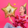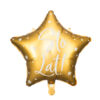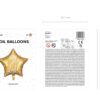 Błyszczący balon foliowy w kształcie gwiazdki w kolorze złotym z białym napisem Sto Lat!, rozmiar przed napompowaniem ok. 47 cm (18.5”), rozmiar po napompowaniu ok. 40 cm (15.5”). Do napompowania powietrzem i helem.