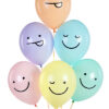 Balony Strong Buźki z nadrukami, zestaw zawiera 6 wzorów: pastelowy w kolorze Light Mint z czarnym nadrukiem, pastelowy w kolorze Light Lilac z czarnym nadrukiem, pastelowy w kolorze Pale Pink z czarnym nadrukiem, pastelowy w kolorze Light Peach z czarnym nadrukiem, pastelowy w kolorze Light Yellow z czarnym nadrukiem, pastelowy w kolorze Light Blue z czarnym nadrukiem, średnica ok. 30 cm. (1 op. / 50 szt.)