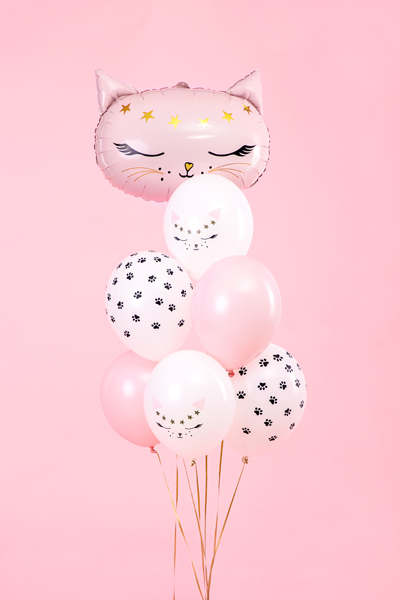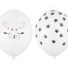 Balony Strong Kotek z nadrukami, zestaw zawiera 2 wzory: pastelowy w kolorze Pure White z kolorowym nadrukiem i pastelowy w kolorze Pure White z czarnym nadrukiem, średnica ok. 30 cm. (1 op. / 50 szt.)