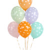 Balony Strong Kropki z nadrukami, zestaw zawiera 6 wzorów: pastelowy w kolorze Mandarin Orange z białym nadrukiem, pastelowy w kolorze Light Mint z białym nadrukiem, pastelowy w kolorze Light Lilac z białym nadrukiem, pastelowy w kolorze Bright Orange z białym nadrukiem, pastelowy w kolorze Pistachio z białym nadrukiem i pastelowy w kolorze Pale Pink z białym nadrukiem, średnica ok. 30 cm. (1 op. / 50 szt.)