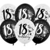 Balony Strong 18th! birthday z białym i czarnym pięciostronnym nadrukiem, mix kolorów (Pure White i Black), średnica 30 cm. (1 op. / 6 szt.)