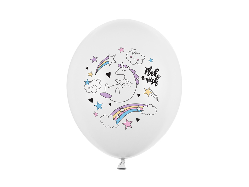 Balony Strong Jednorożec w kolorze Pastel Pure White z dwustronnym nadrukiem, średnica 30 cm (1 op. / 50 szt.)