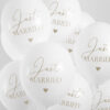 Balony Strong, Pastel Pure White ze złotym dwustronnym nadrukiem Just Married, średnica 30 cm (1 op. / 50 szt.)