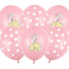 Balony Strong Słonik, Pastel Baby Pink Mix, w skład zestawu wchodzą balony z dwustronnym nadrukiem Słonik, oraz z białym, pięciostronnym nadrukiem Kropki. (1 op. / 6 szt.)