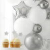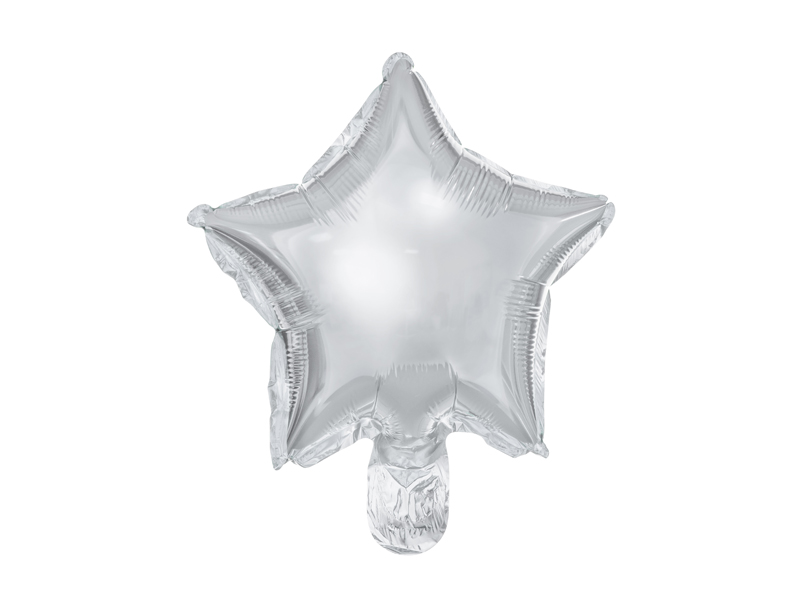 Balony foliowe metalizowane w kształcie gwiazdek w kolorze srebrnym, wymiary: wysokość przed napompowaniem ok. 25 cm (10”), po napompowaniu ok. 21 cm (8”). Do napompowania powietrzem. (1 op. / 25 szt.)