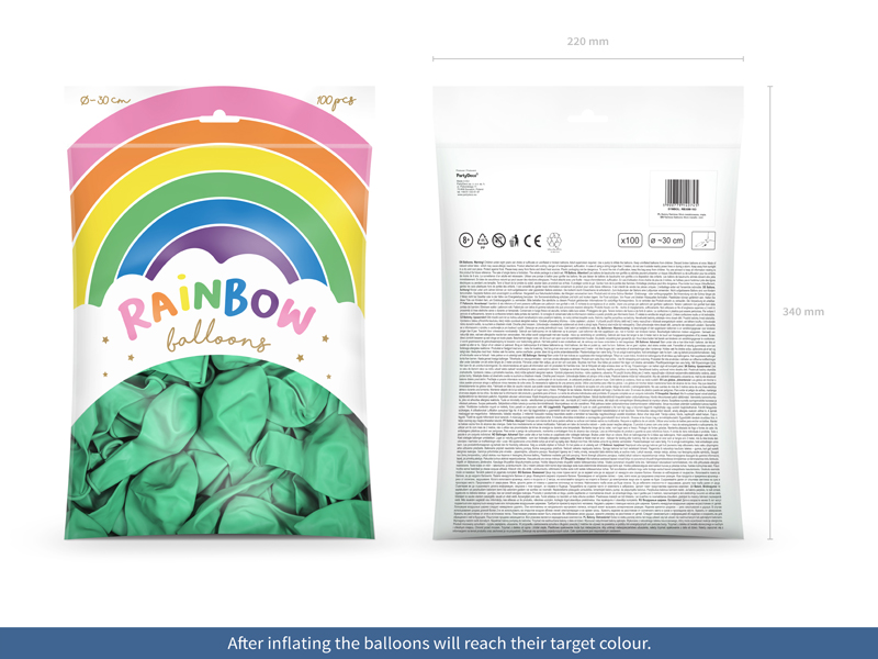 Balony Rainbow metalizowane w kolorze miętowym, średnica ok. 30 cm. (1 op. / 100 szt.)