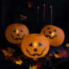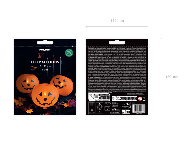 Balony świecące Dynie w kolorze pomarańczowym z czarnym nadrukiem, średnica ok. 25 cm. (1 op. / 5 szt.)