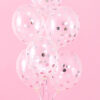Transparentne balony ze srebrnym metalizowanym konfetti w kształcie kółek w środku, średnica balonu ok. 30 cm. (1 op. / 6 szt.)