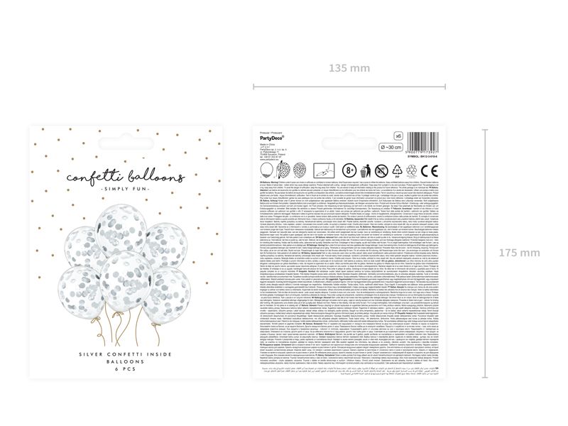 Balony z konfetti – kółka, 30cm, srebrny (1 op. / 6 szt.)