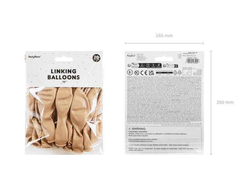 Balony z łącznikiem w kolorze nude, średnica ok. 33 cm (13”). (1 op. / 20 szt.)
