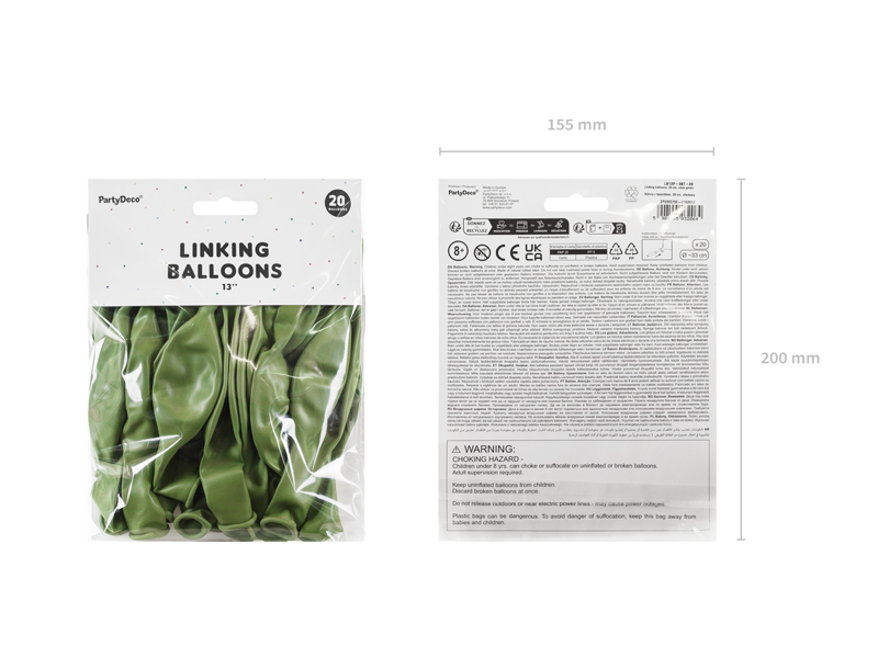 Balony z łącznikiem, 33 cm, oliwkowy (1 op. / 20 szt.)