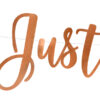 Baner przeszywany Just Married, wykonany z papieru lustrzanego w kolorze różowego złota, wymiary: wysokość ok 20 cm, długość ok. 77 cm.