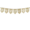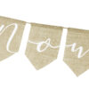 Baner wykonany z juty z białym napisem Nowożeńcy, wymiary: wysokość ok. 23 cm, długość ok. 155 cm.