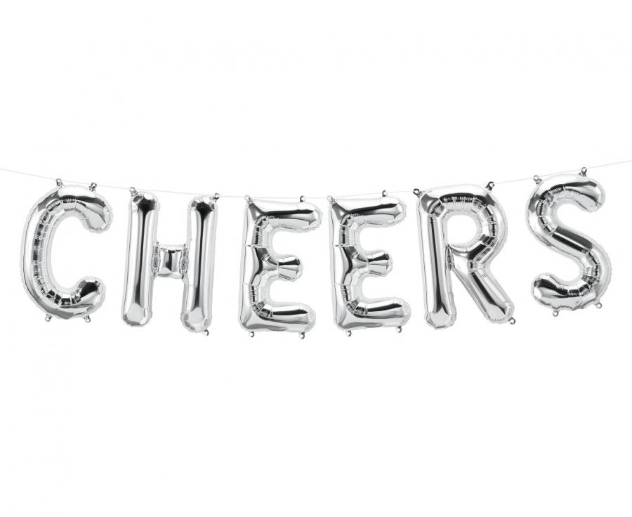 BALON FOLIOWY NAPIS CHEERS, SREBRNY