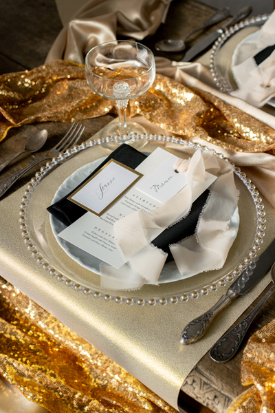 Bieżnik dekoracyjny w kolorze złotym, szerokość ok. 36 cm, długość ok. 3 m.